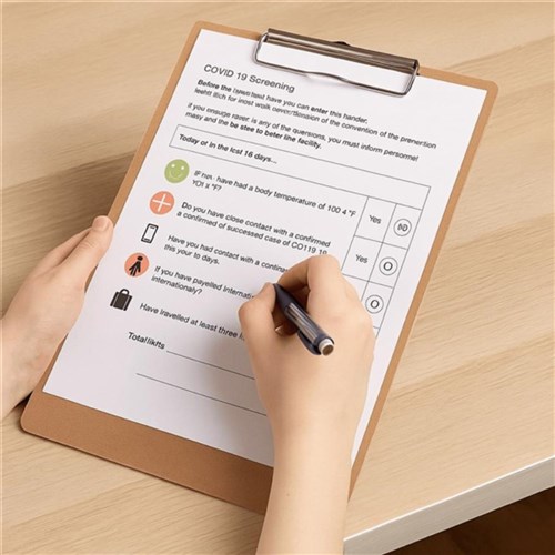 • Durable masonite clipboard. Compact foolscap size.