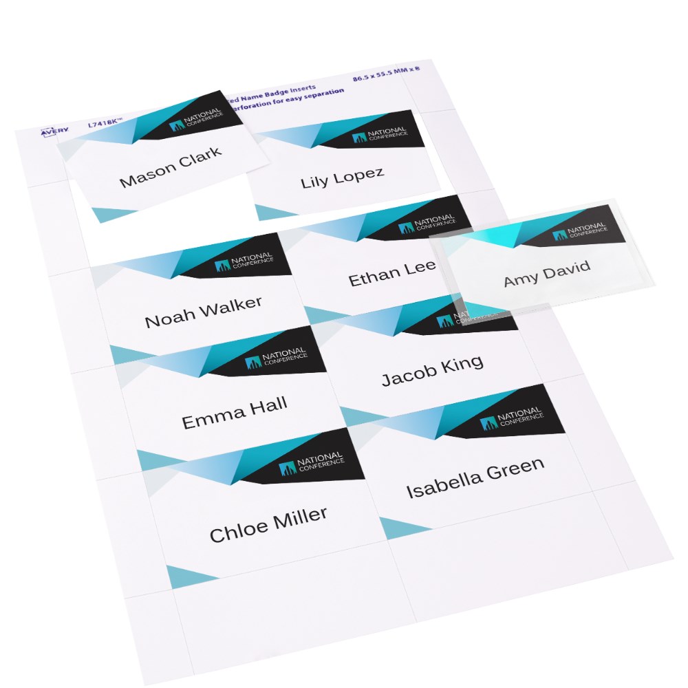 Avery Lanyard Name Badge Kit + Lanyards+Holders White L7418 86.5 x 55.5mm 8UP 16 Labels