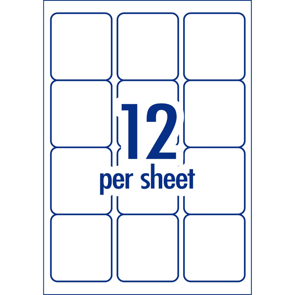 Size: 63.5 x 72mm, 1200 labels, 100 sheets. 12 labels per sheet (12UP).