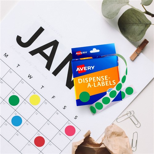 Avery Removable Dispenser Labels 24mm Round Assorted Pastel Box of 300