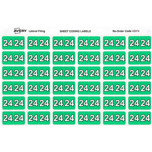 Avery Side Tab 24 Year Code Labels 25 x 38mm Green Box of 500
