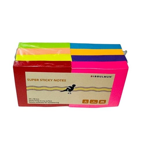 Bibbulmun Super Sticky Notes 50 x 50mm Assorted Pack Of 24