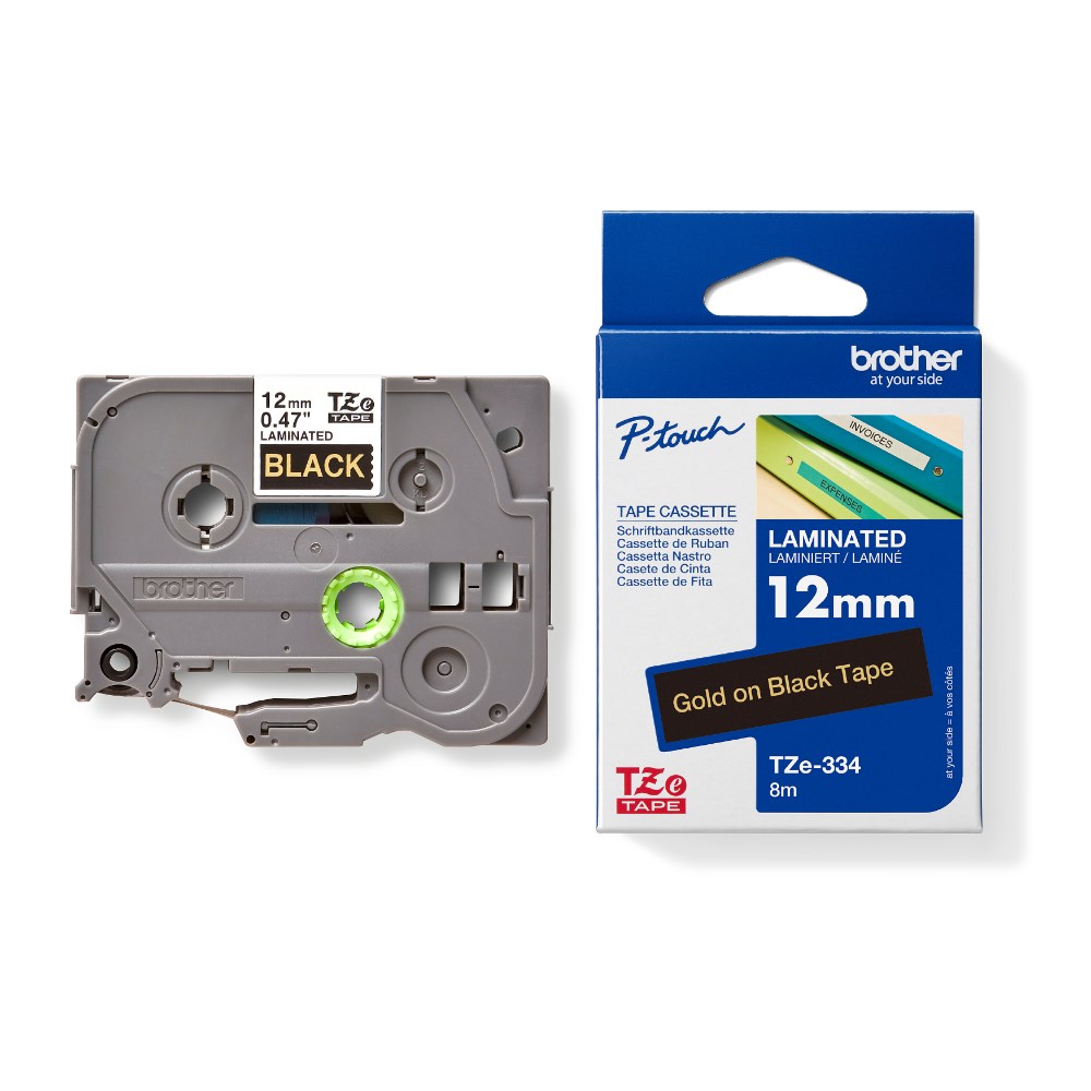 Brother TZE-334 P-Touch Laminated Tape 12mm x 8m Gold On Black