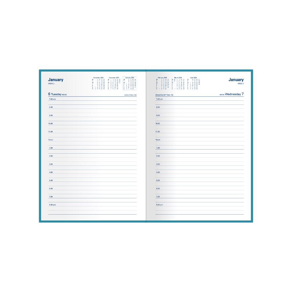Bound in durable PVC with soft flexible cover. Printed on white paper, week numbers, Julian days, Australian and New Zealand holidays.