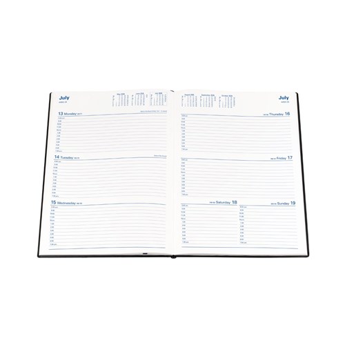 Bound in a highly durable, welded PVC padded cover. Printed on white paper, week numbers and Julian days.