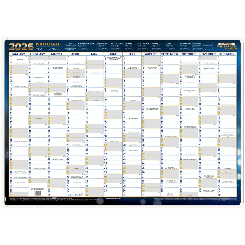 Collins Writeraze Dated Wall Planner 500 x 700mm Framed Blue