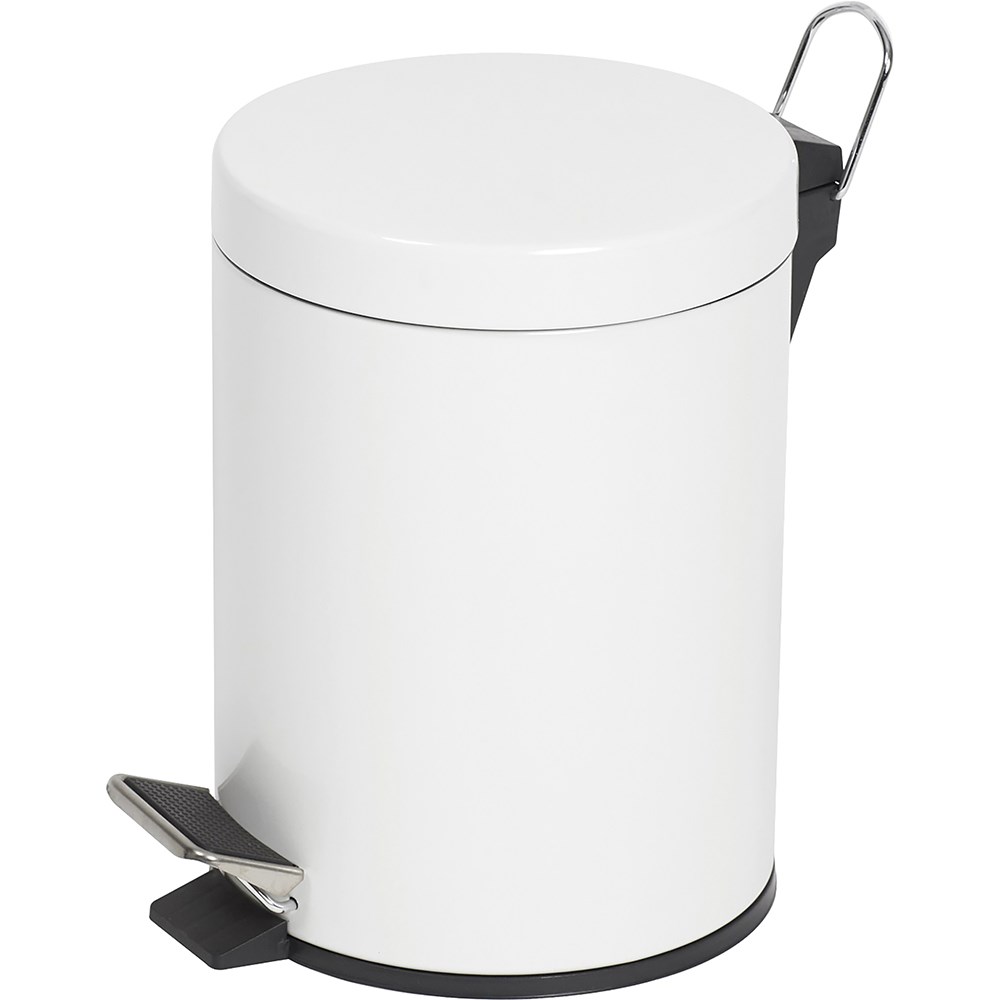 Compass Round Powder Coated Pedal Bin 5 Litres White