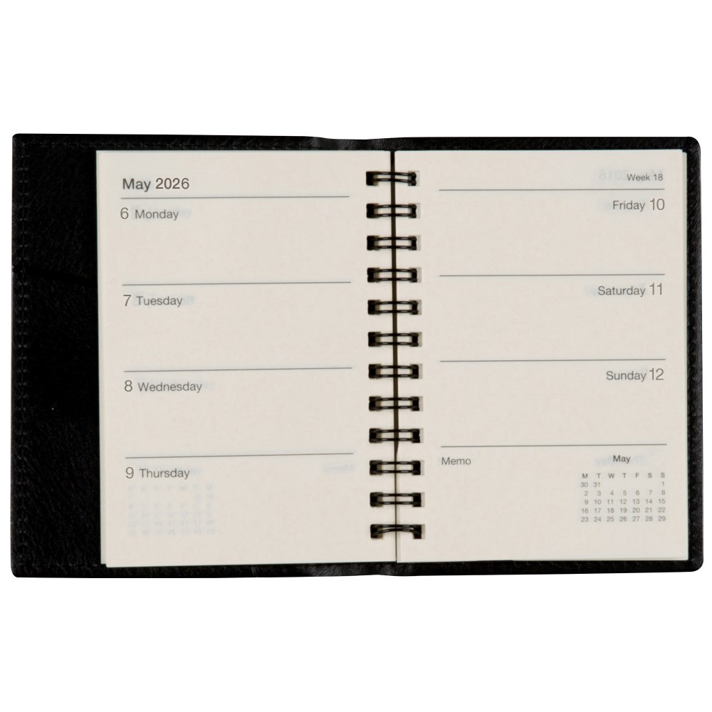 Includes a ribbon bookmarker to mark significant dates, events, or entries within the diary.