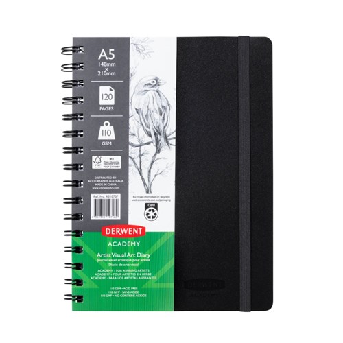 Derwent Academy Visual Art Diary A5 120 Page Portrait Black