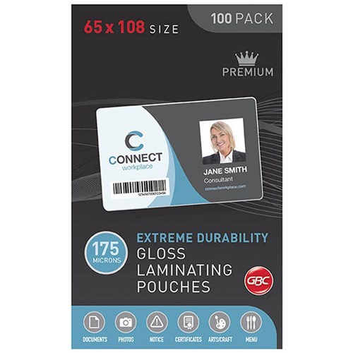 GBC Laminating Pouches 64 x 99mm 125 Micron Gloss Pack Of 100