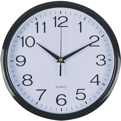 Italplast Wall Clock 30cm Round With Large Numbers Black Frame White Plastic Face