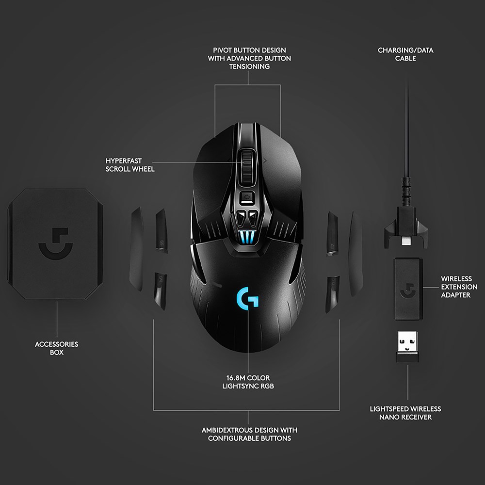 Logitech G903 Lightspeed Wireless Gaming Mouse with Hero 16K Sensor Black