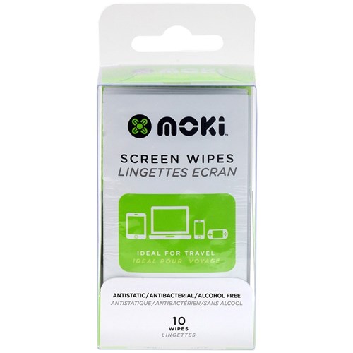 10 pre moistened wipes, ideal for cleaning grime and fingerprints from smartphones, tablets and portable devices.