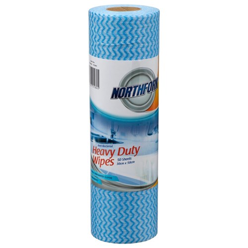 Northfork Antibacterial Heavy Duty Wipes Roll 50 Sheets Blue
