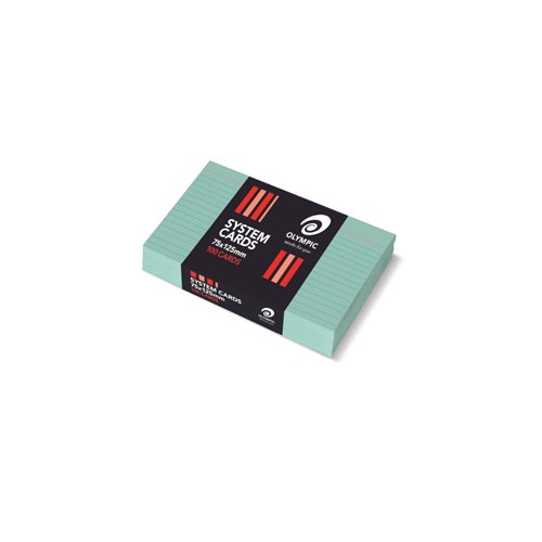 Olympic System Cards 75 x 125mm Ruled Green Pack Of 100