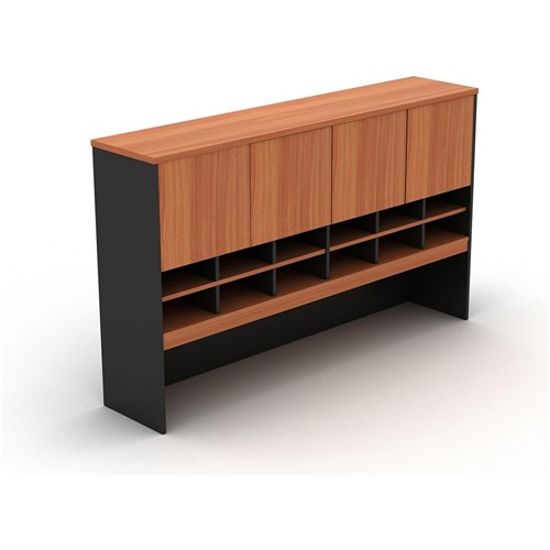 OM Pigeon Hole Hutch + Storage 1800W x x325D x 1080mmH Cherry And Charcoal