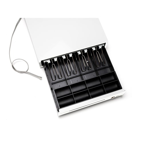 The cash drawer comes with a 1 metre cable to connect your receipt printer.