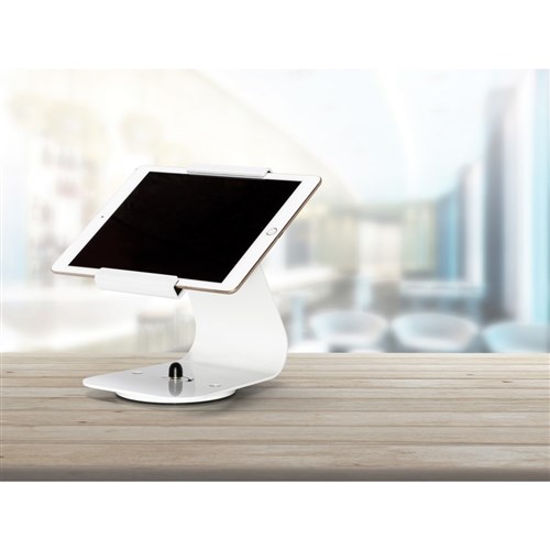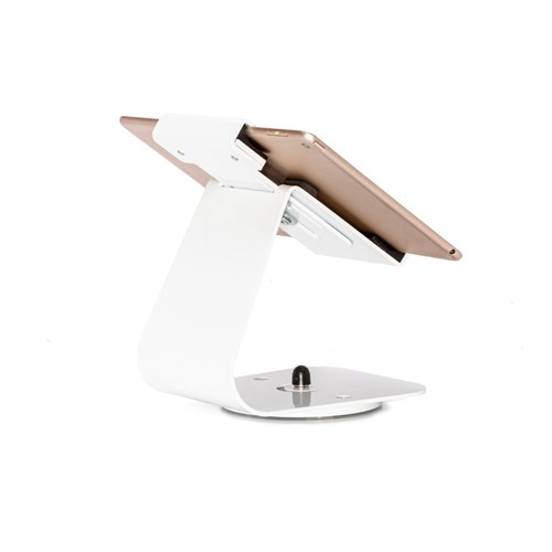 The 180 degree swivel base allows you to rotate it without needing to lift or remove the tablet from the stand.
