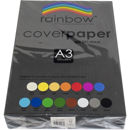 Rainbow Cover Paper A3 125gsm Black 100 Sheets