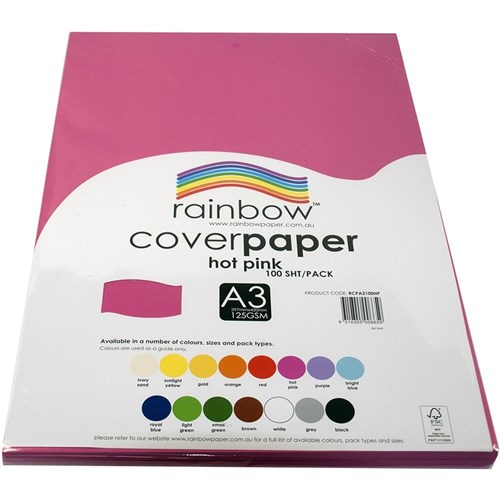 Rainbow Cover Paper A4 125gsm Hot Pink 100 Sheets