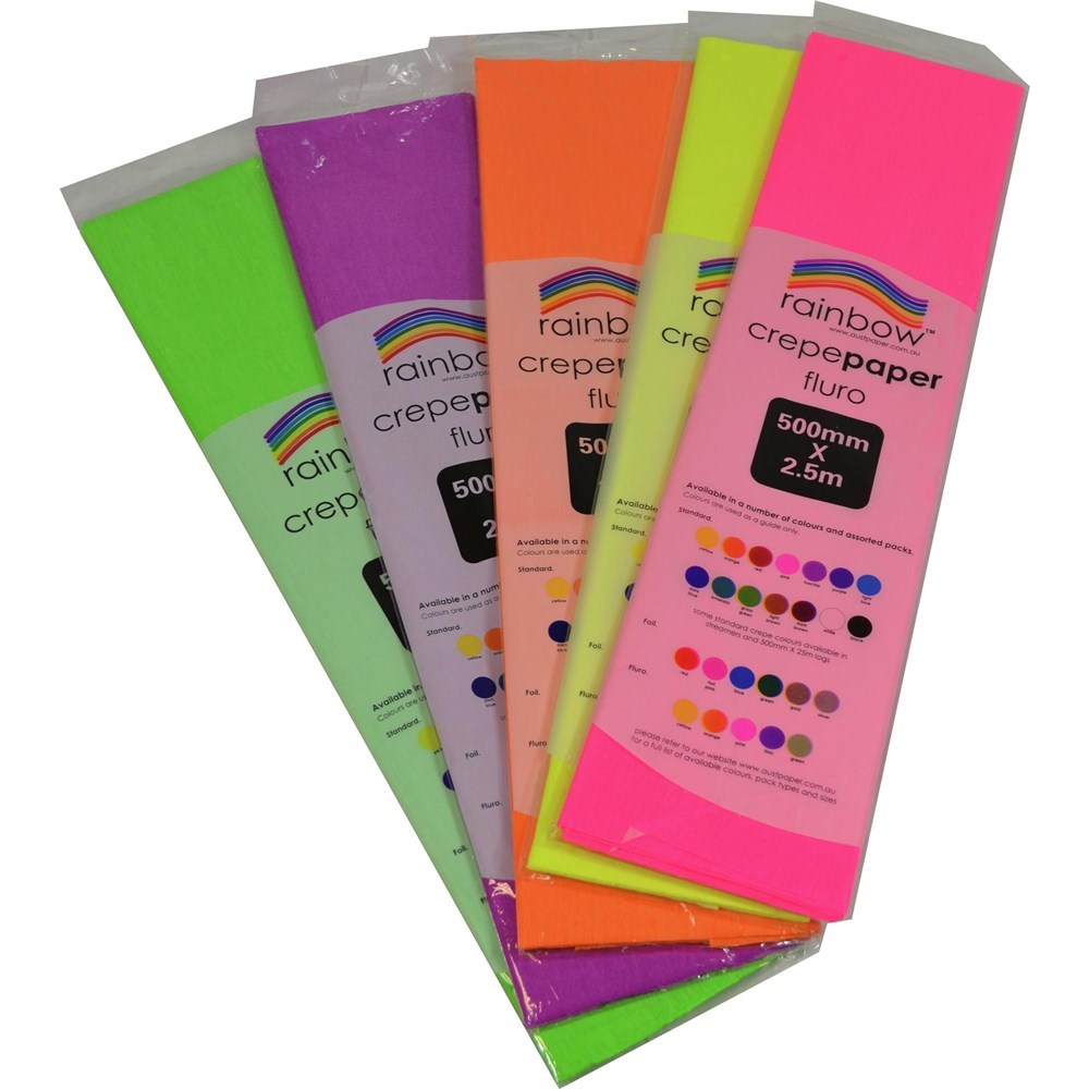 Rainbow Fluro Crepe Paper 500mm x 2.5m Assorted Pack Of 5