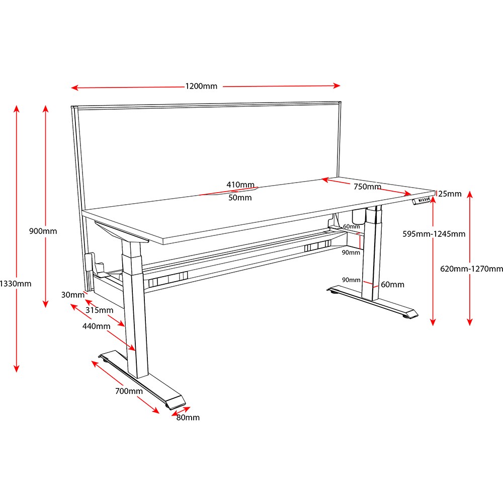 620-1270mm height range for desk.