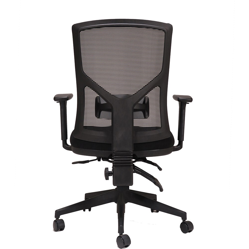 Black mesh back with black fabric seat pan.