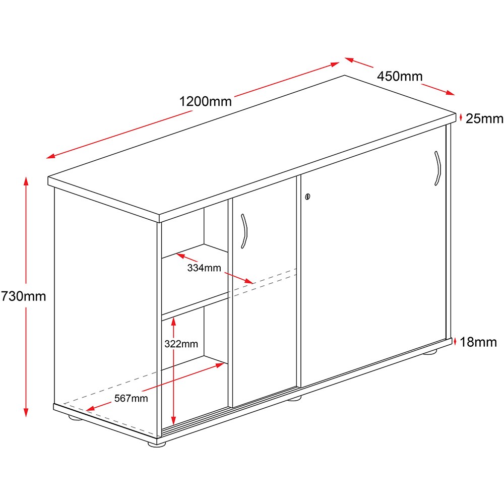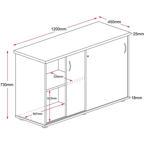 Rapidline Credenza Sliding Doors 1200W x 450D x 730mmH Cherry And Ironstone