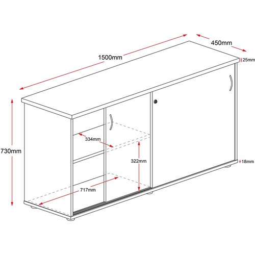 Rapidline Credenza Sliding Doors 1500W x 450D x 730mmH Cherry And Ironstone