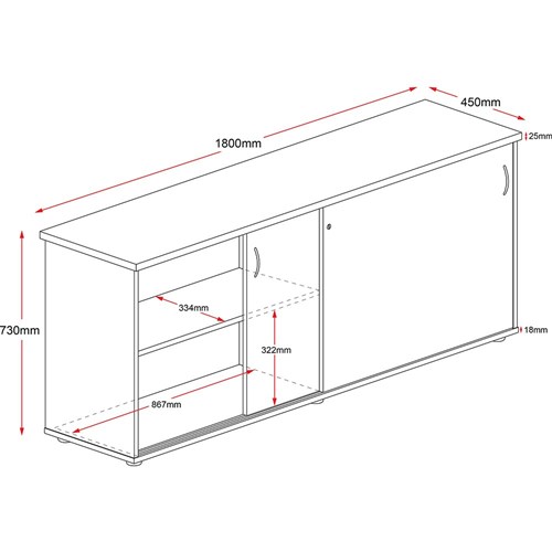 Rapidline Credenza Sliding Doors 1800W x 450D x 730mmH Cherry And Ironstone