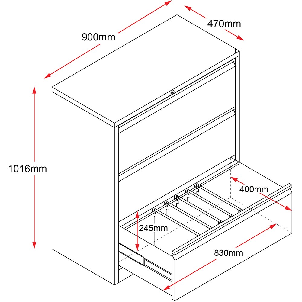 Rapidline Go Lateral Filing Cabinet 3 Drawer 900W x 473D x 1016mmH Black