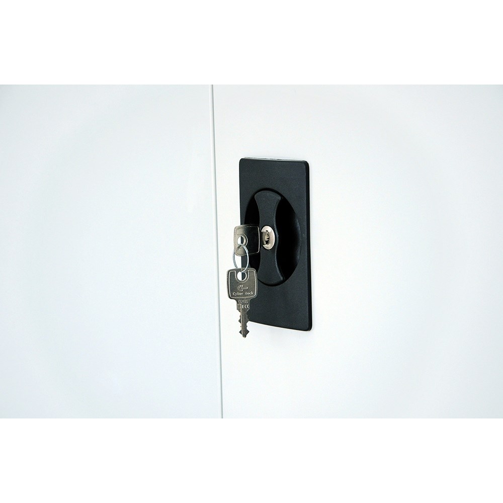 GO swing door cupboards have a flush lock and two adjustable shelves.