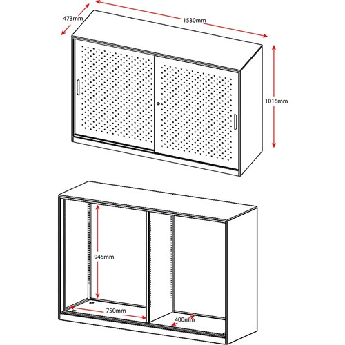 GO perforated sliding door cupboard with 2 doors.