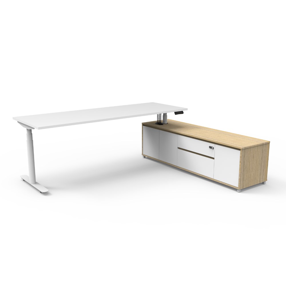 Rapidline Halo+ Executive Desk + RHS Cabinet 2270W x 1936D x 620-1270mmH White/White