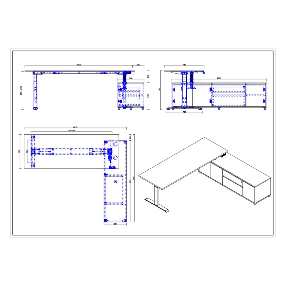 Desk Dimensions: 2100W x 750D x 620-1270mmH.