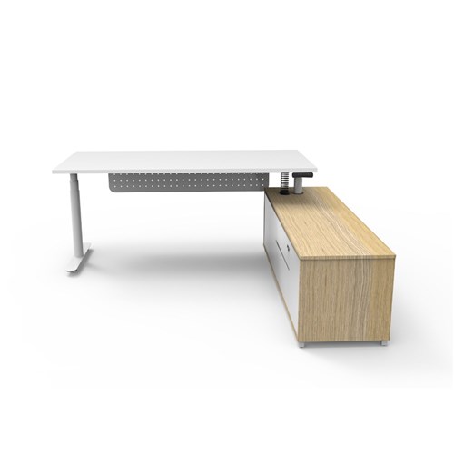 Rapidline Halo+ Executive Desk + RHS Cabinet + Panel 2020W x 1936D x 620-1270mmH Oak/White