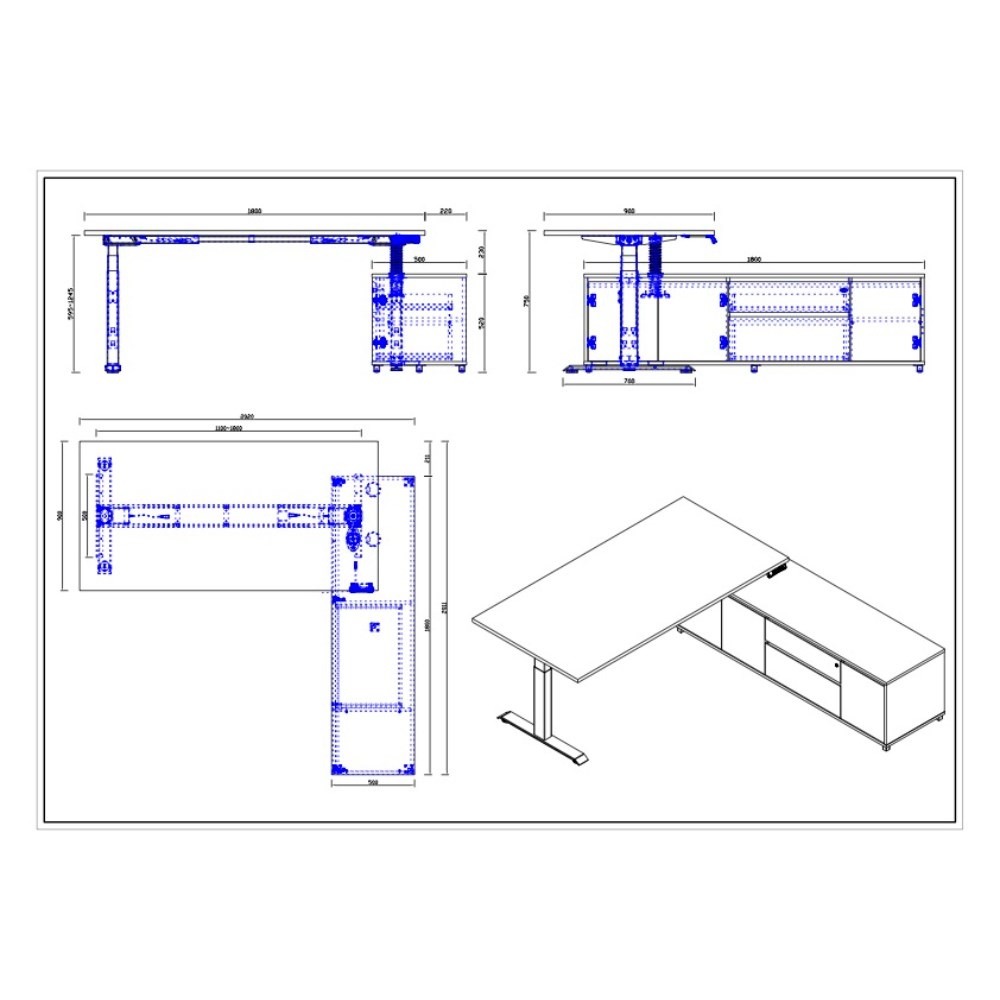 Desk Dimensions: 1800W x 900D x 620-1270mmH.