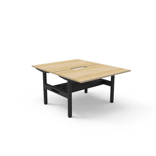 Natural Oak top Black Satin frame. Double sided workstation with cable tray.