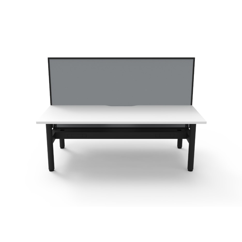 Natural White top Black Satin frame. Double sided workstation with screen and cable tray.