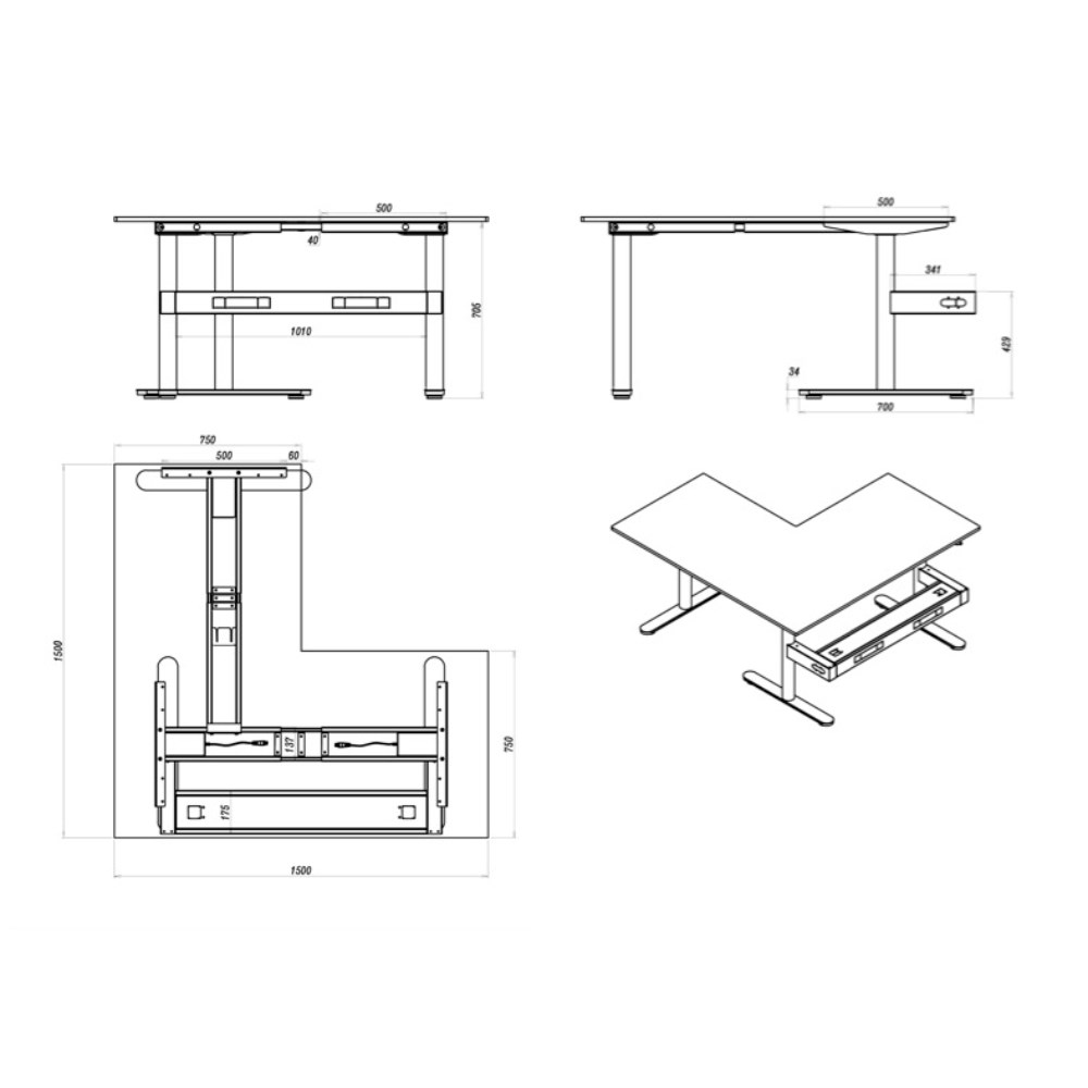Desk Dimensions: 1500W x 1500W x 750D x 730mmH. Height With Screen: 1330mm.