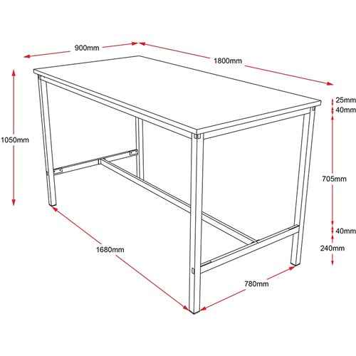 Rapidline High Bar Table 1800W x 900D x 1050mmH Cherry Top Black Frame