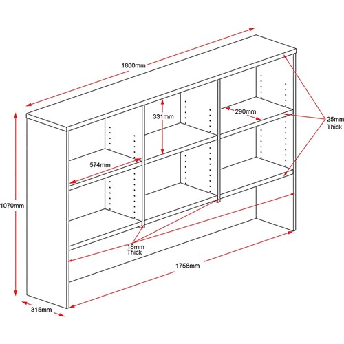 Rapidline Rapid Span Bookcase 900W x 315D x 1800mmH 4 Adjustable Shelves Beech
