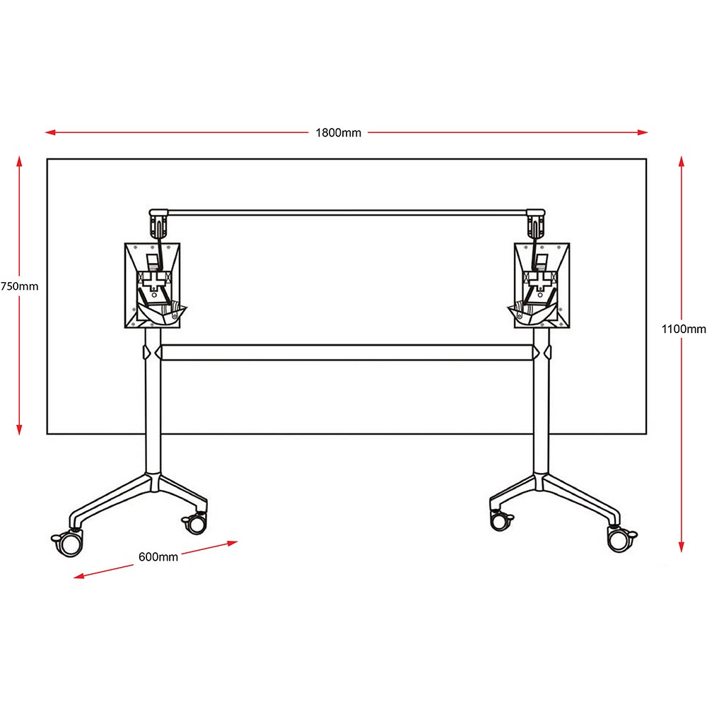 Rapidline Typhoon Flip Top Table 1800W x 750D x 750mmH White Top All Black Frame