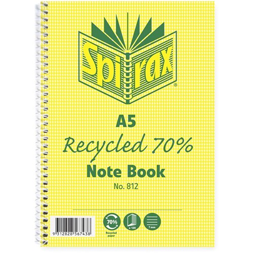 Spirax 812 Recycled 100% Notebook A5 Ruled 120 Pages Side Opening
