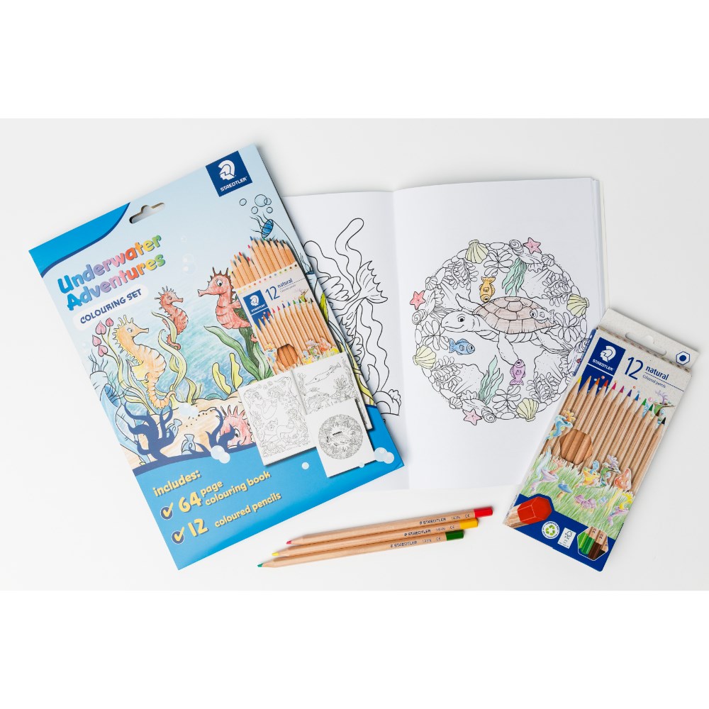Contains Staedtler Natural Colour Pencils with a 64 page colouring book filled with great adventures.
