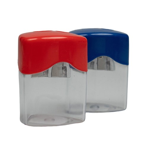 Stat Sharpener Double Hole Metal With Clear Canister Assorted