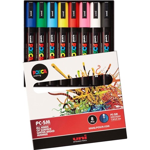 Uni Posca PC-8K Paint Marker Broad 8mm Chisel Tip Assorted Colours Wallet Of 8