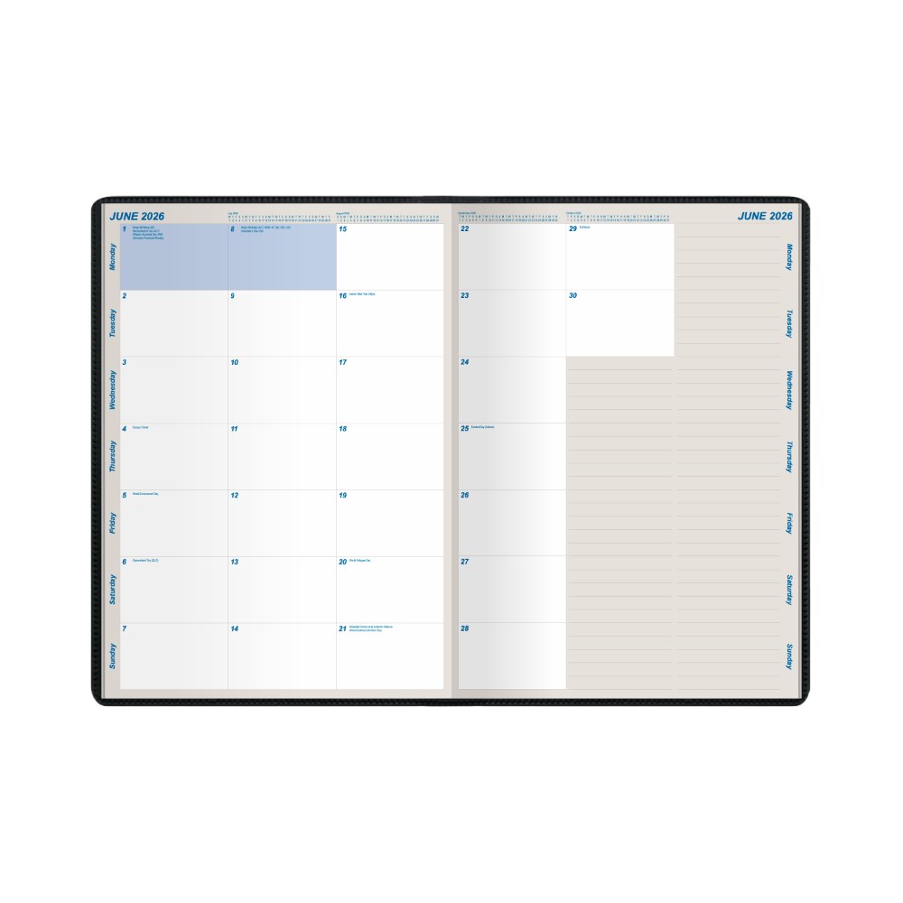 The planner features a month to view layout and stapled binding.