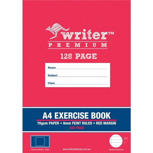 Writer Premium Exercise Books feature heavy duty covers, high quality white 70gsm paper with blue ruled lines and a red margin